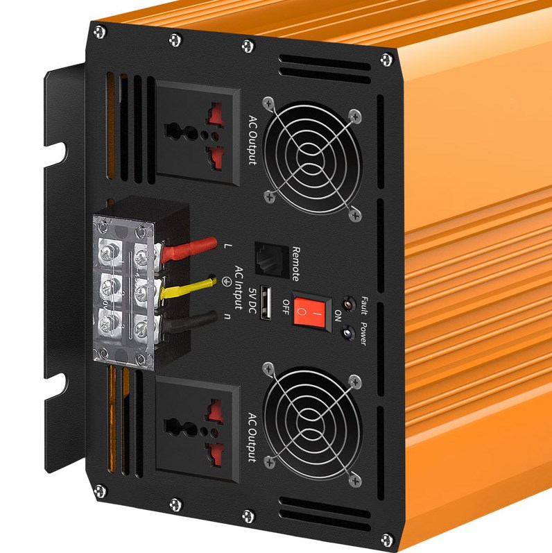 An inverter is an electrical device that can convert direct current (batteries, solar cells, wind turbines, etc.) into alternating current. The inverter adopts high-frequency power conversion technology, replacing the old and bulky silicon steel transformer with ferrite transformer. That's why our power inverter is lighter and smaller than other similar inverters. When the inverter operates in reverse phase mode, the output waveform is a sine wave.