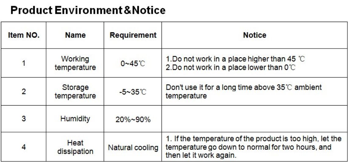 5.. Do not put the device under too High or too low ambient temperature, it will shorten the service life of electronic products and make damage of the product shell.