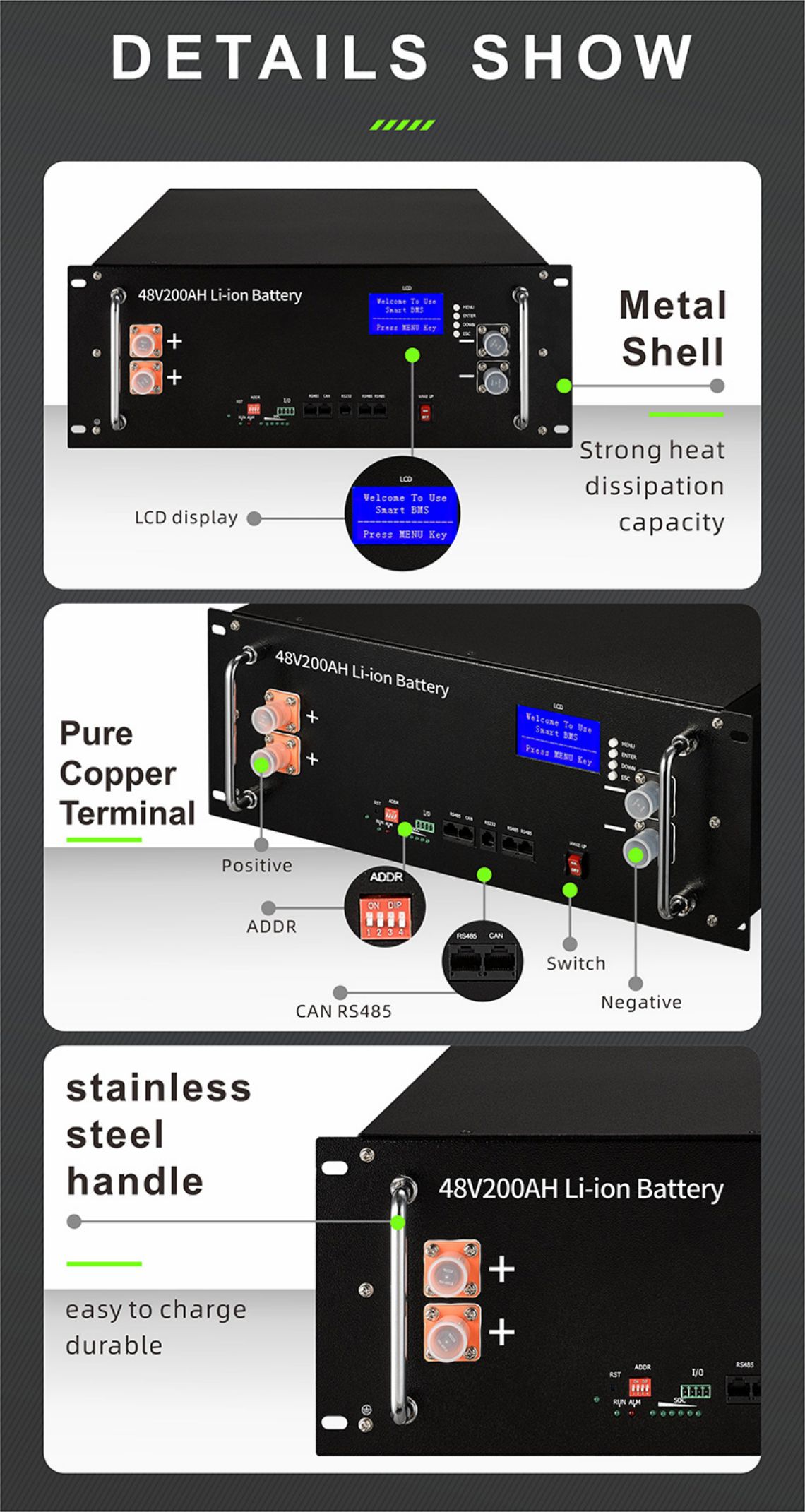 High efficiency: rack mounted Iron phosphate energy storage lithium battery has high charging and discharging efficiency, which can make full use of electric energy and improve energy utilization efficiency.